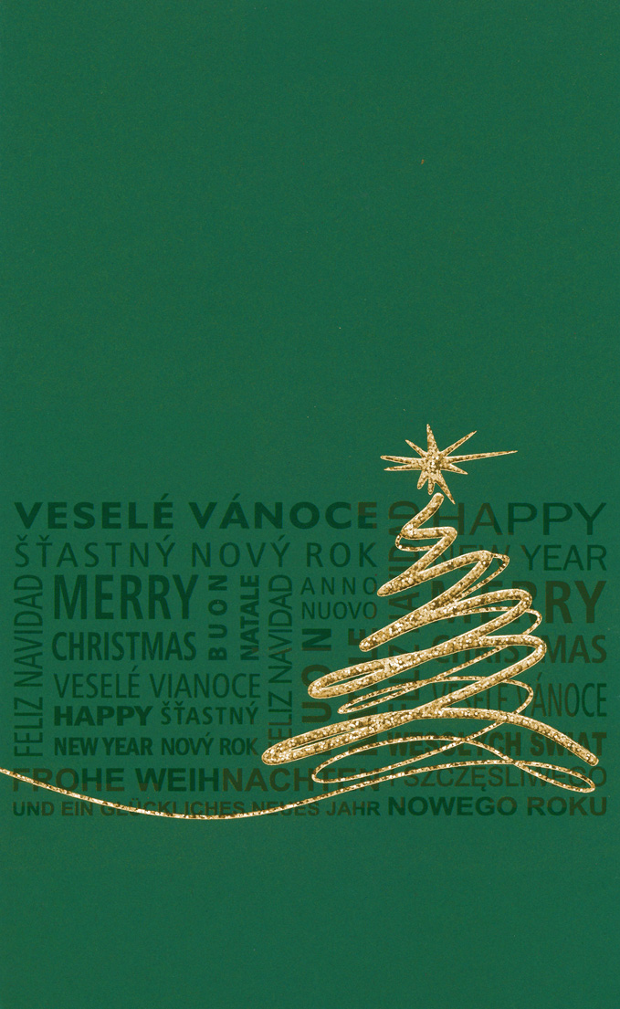 | Popis: | Otevírací novoročenka z tmavě zeleného papíru s motivem stromku tvořeného reliéfní ražbou se zlatou difrakční fólií. Pro dotisk textu je uvnitř vložena kartička z přírodně bílého grafického papíru. |