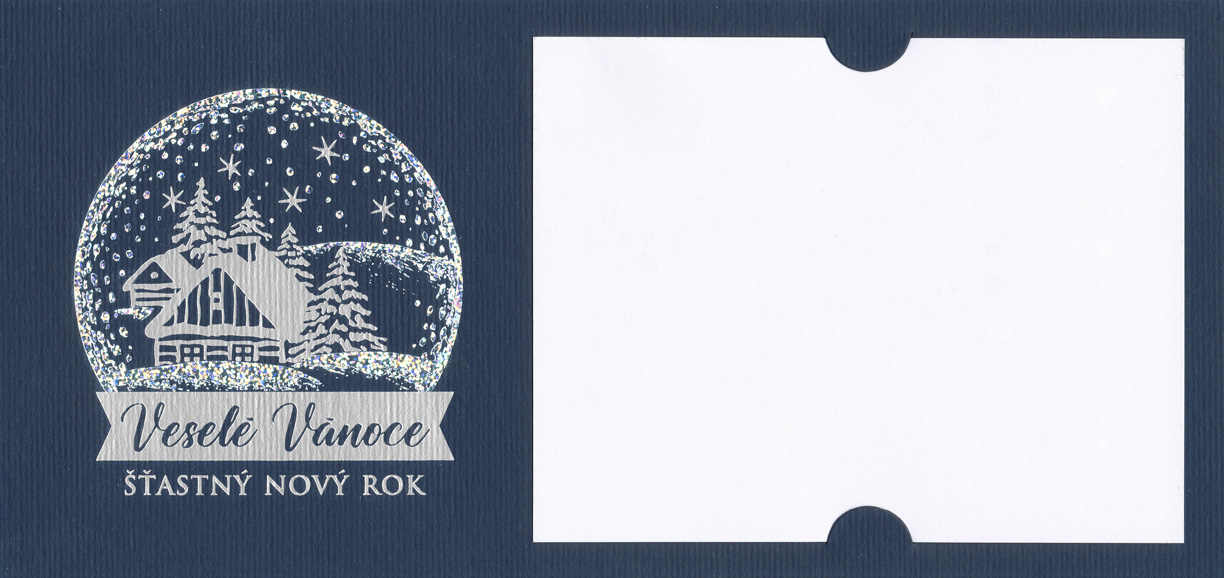 | Popis: | Kartička z tmavě modrého grafického papíru. Motiv je tvořen stříbrnou matnou ražbou a stříbrnou difrakční ražbou. Pro dotisk je vložena kartička z bílého hladkého papíru. |